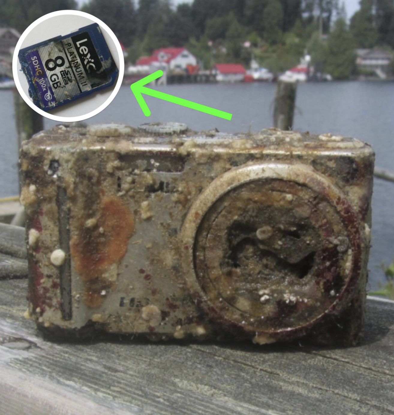 The memory card still in tact from the recovered camera, Photo Credit: Bamfield Marine Sciences Centre