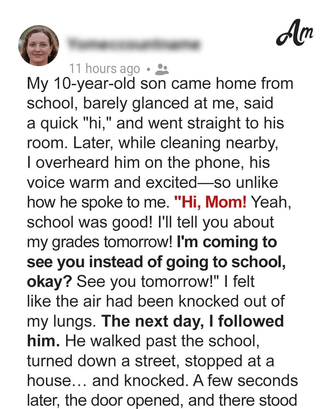 I Overheard My Son Saying on the Phone, ‘Hi, Mom! I’ll Visit You Tomorrow Instead of Going to School!’ — I Decided to Follow Him