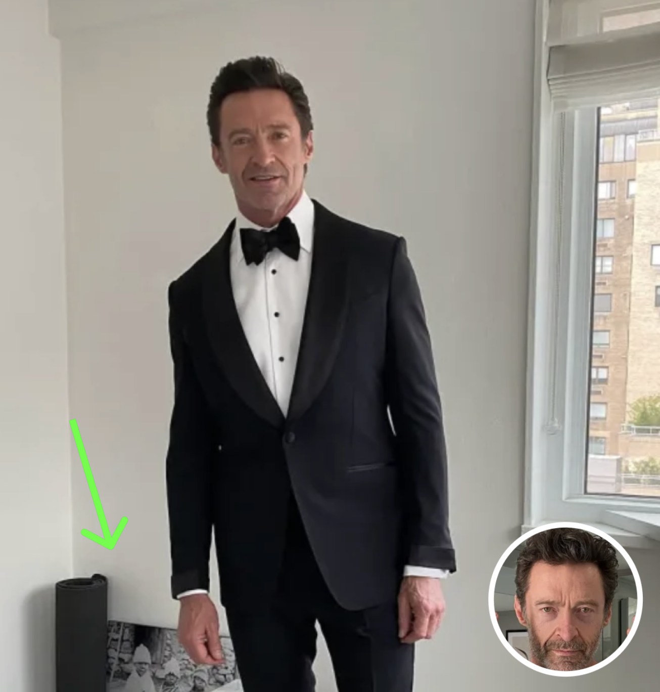 Hugh Jackman posing in a tuxedo before going to the Met Gala, Photo Credit: thehughjackman/Instagram