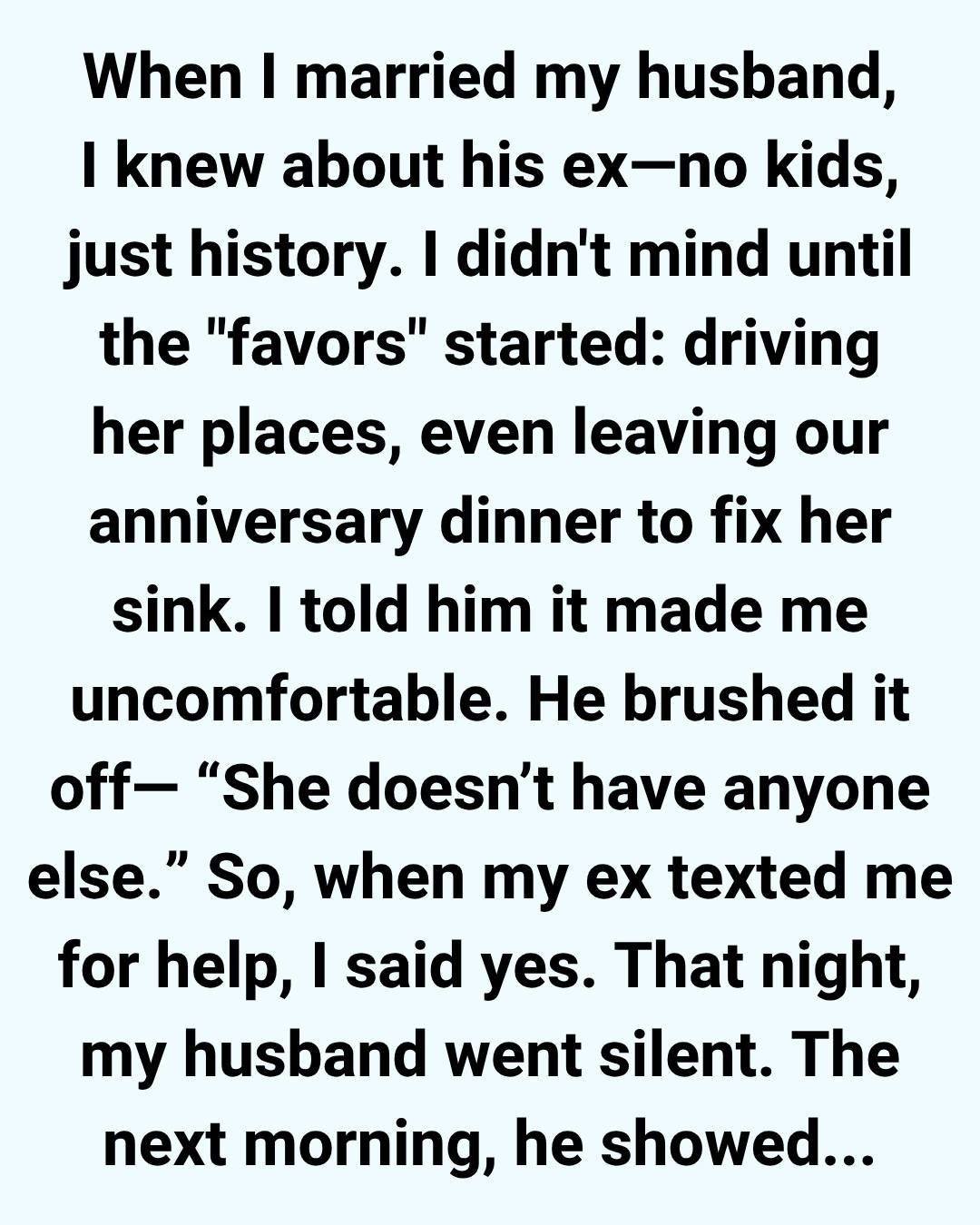 Then the favors began. It started innocently enough: “Can you fix my Wi-Fi?” or “My car won’t start.” Soon, it turned into rides to the airport, help with her lease, and endless small rescues. And every single time, he said yes.