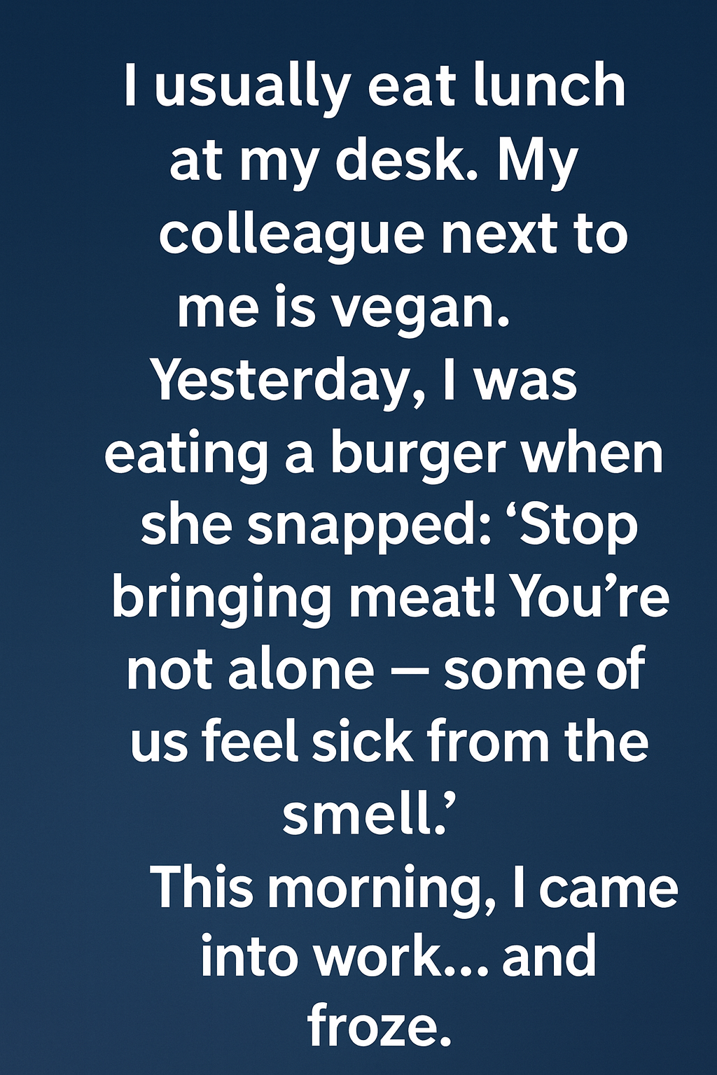 An employee walked into work this morning and was blindsided by an HR notice with his name plastered on it — all because his vegan colleague claimed the smell of his lunch “made her sick.”