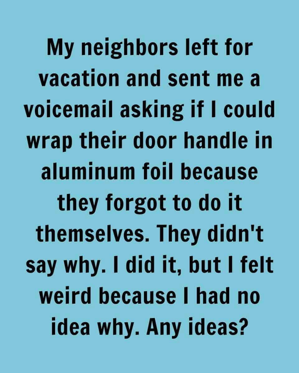 Burglars often look for easy, quiet targets. A door handle wrapped in foil might make them hesitate, suggesting that the homeowner is cautious and alert. This small but visible sign could be enough to make them move on to another target.