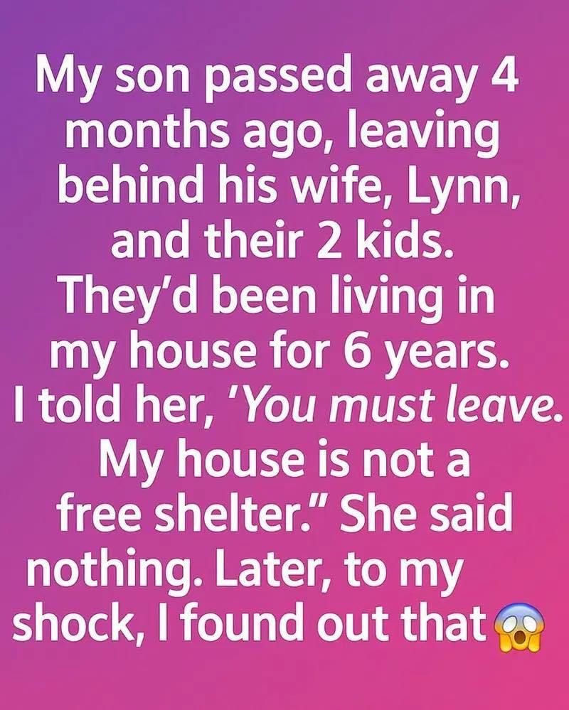 For six years, my daughter-in-law Lynn and her two children lived in my house. When my son was alive, it never once felt like a burden. On the contrary, I enjoyed the noise of children’s laughter echoing through the hallways. I loved hearing my son’s footsteps returning home from work, the sound of his voice filling the kitchen as he teased his wife or played with his kids.
