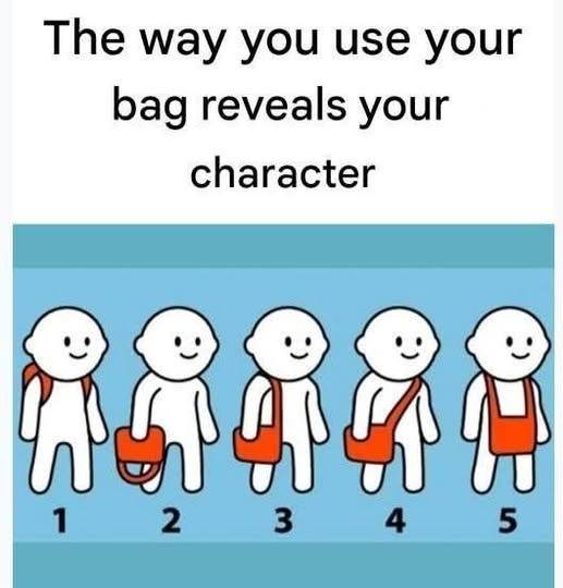 This person rarely carries a bag. Instead, they stuff things into their pockets or simply borrow a friend’s bag when they need one. This approach can reveal a “carefree and unburdened” attitude, as they don’t like being weighed down by possessions. They are also often “dependent,” comfortable relying on their friends for support. Their lack of planning might also mean they are “impulsive,” preferring to live spontaneously without a lot of forethought.